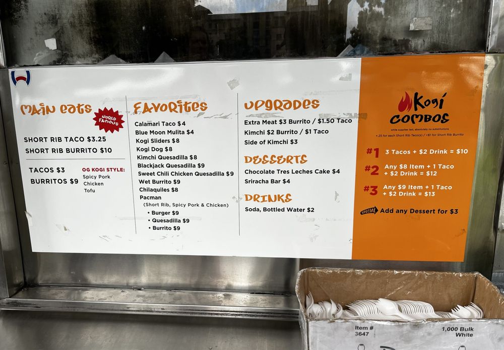 Kogi BBQ Truck, a Korean-Mexican fusion food truck located in Los Angeles, CA, offers a unique dining experience. Known for their flavorful dishes, such as the short rib tacos and the Pac-Man quesadilla, customers rave about the bold flavors and creative menu options. The short rib burrito is a crowd favorite, combining rice, kimchi, and tender meat in a satisfying wrap. The service is fast and efficient, perfect for a quick bite on the go. While the prices are reasonable, the quality of the food is exceptional. If you're looking for a delicious and memorable dining experience, don't miss out on Kogi BBQ Truck. Whether you're a fan of fusion cuisine or simply looking to try something new, this food truck is a must-visit destination.